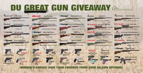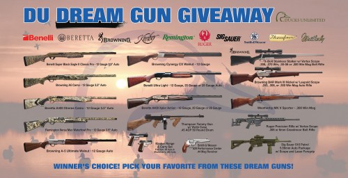 $4000 Dream Gun Sponsor is for your choice of 1 item from the Dream Gun list or 3 from the Great Gun List, 1 table (8 seats) and would include dinner for 8 people, as well as (8) one year subscriptions to Ducks Unlimited. Also included would be 8 Fort Worth DU Pint Glasses, DU hats and DU Headlamps, one for each person.Table purchaser would receive (1) $100 book of tickets for the raffles, 1 Game Guard Cooler Bag with TX DU logo, and sponsor recognition in program as well as the sponsorship scroll displaying on 4 large screens throughout the venue.